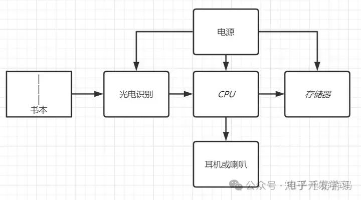 以上就是整个板子上的关键器件。原理图网上其实都可以找到,关键词(松翰方案点读笔原理图)。整个板子的框图我从知乎上找了一个,作者静静妈,她的文章里也写了不少关于点读笔的内幕,我后面的文章有部分参考。