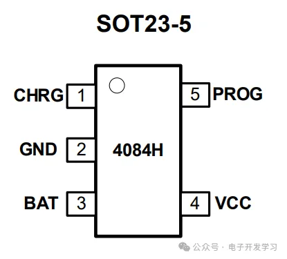 锂电池充电芯片的封装是SOT23-5,上面的丝印是65b130,但是我根据这个型号并没有找到对应的厂家和准确的型号,只是根据电路推断出来这是锂电池充电芯片,然后我找到了一个完全兼容的型号:棱晶半导体的LGS4084H,之所以用他家的来说明,并不是因为他给我广告费,单纯是我找了一圈,就他家的手册做的比较好。引脚图和原理示意图如下: