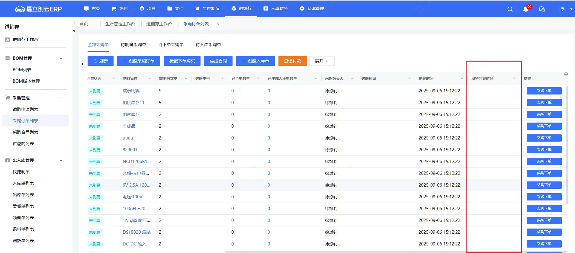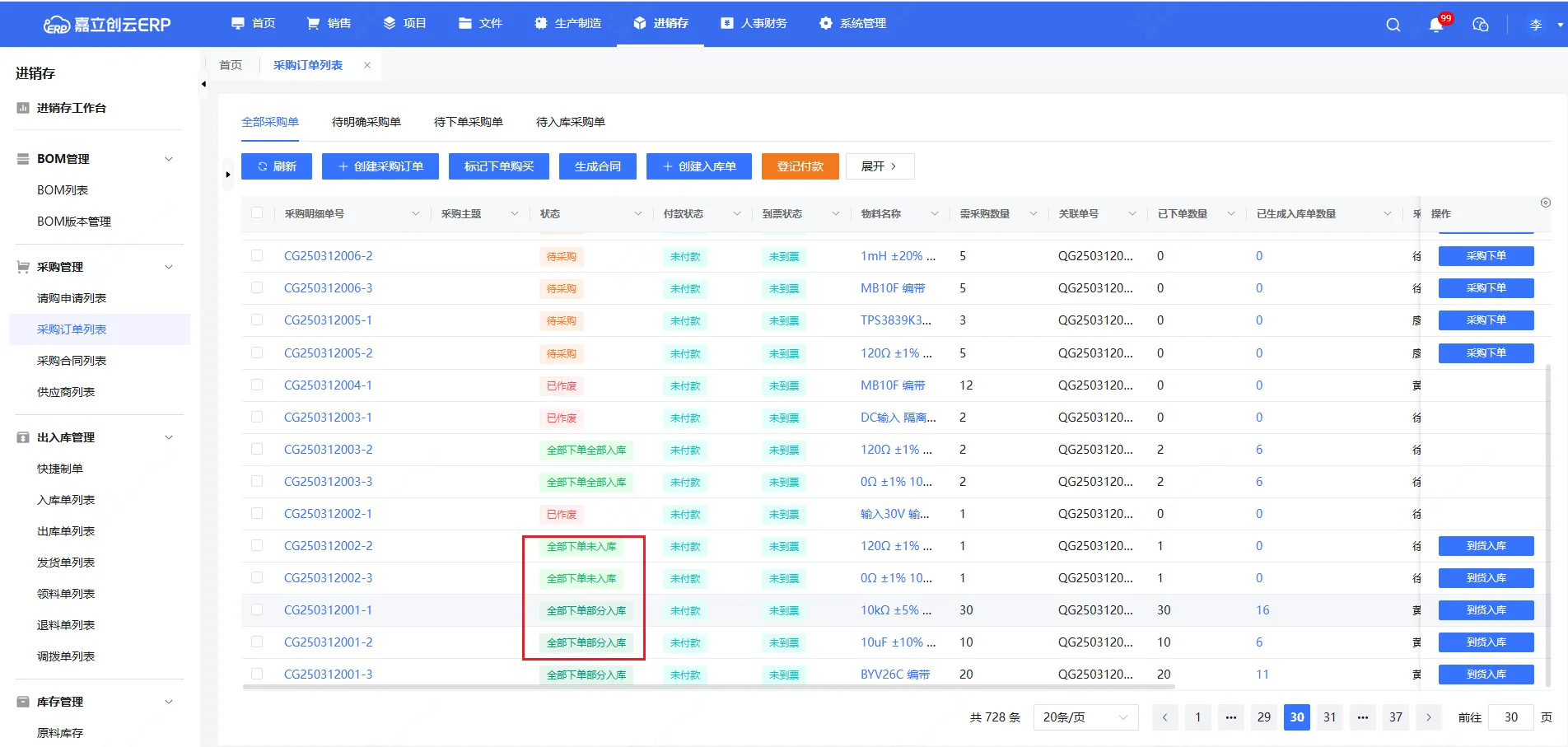 3,采购订单列表,状态列,全部下单未入库和全部下单部分入库 用深浅不同绿色展示
