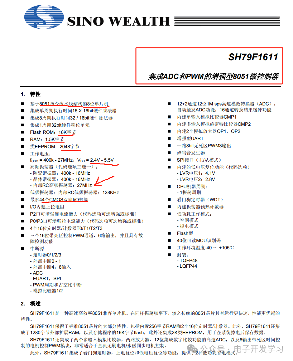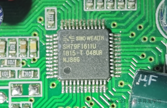 首先看看主控,主控型号是SH79F1611U,封装是LQFP48,这是sinowealth(中颖电子)推出的一颗集成ADC和PWM的增强型8051微控制器。