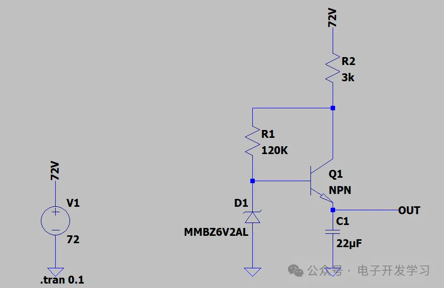 电瓶车的电瓶电压有36V、48V、60V、72V等等,所以最起码得有一个降压的电路吧。原本我做这种方法,高低得放一个DC-DC,但是这种高压的DC-DC真的不便宜,加上电感、电容下来两三块肯定需要的。但是自从我拆了上篇文章那个报警器,我就变得谨慎了,所以我估计这个电控,要么就用DC-DC,要么就用这个三极管降压电路。如果是前者,成本最低按2元,如果是后者,成本3毛左右吧。当然,这个电控,应该还需要一路12V电,所以从高压转到12V应该是前面说的,后面还需要有一个ldo或者三极管降压方案降到5V或者3.3V,又增加了两三毛的成本。