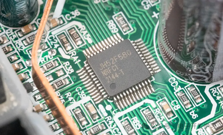 主控芯片型号JH52F580。据说这是SH79F3213U,晶汇重新打标为JH52F580。SH79F3213U是8051内核,带12bit ADC的微控制器。