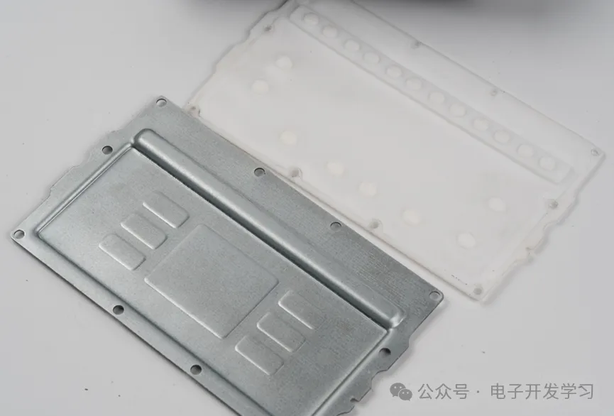 拆解,第一步先拆下底板。地板和电路板之间有一个乳白色的硅胶隔膜,起到了防震、挤压、防水等功能。