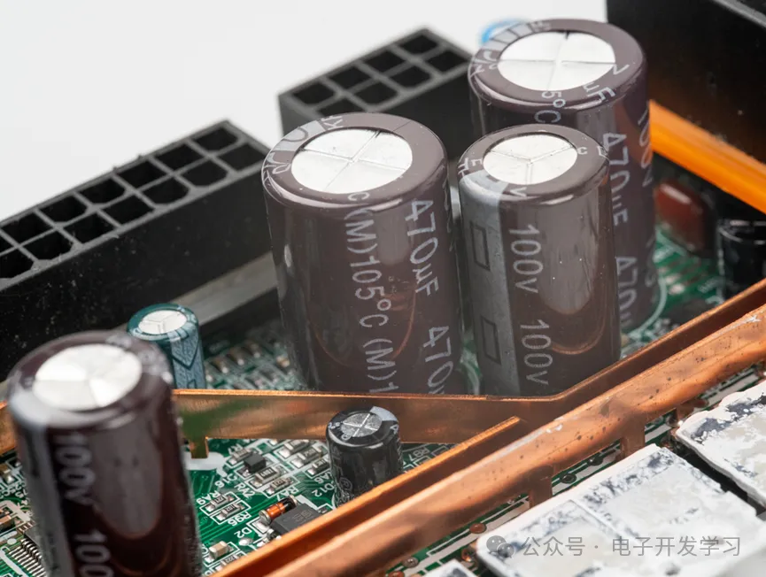 板子上总共用了四个大电解电容,两个是470uF100V,两个是330uF100V。
