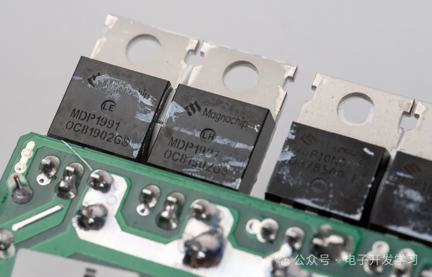 MOS管的型号是MDP1991,来自Magnachip。TO220封装,耐压100V,导通内阻5.9毫欧。