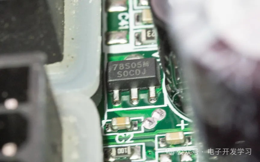 从12V到5V的降压由这个SOT-89封装的LDO实现,型号是7805。