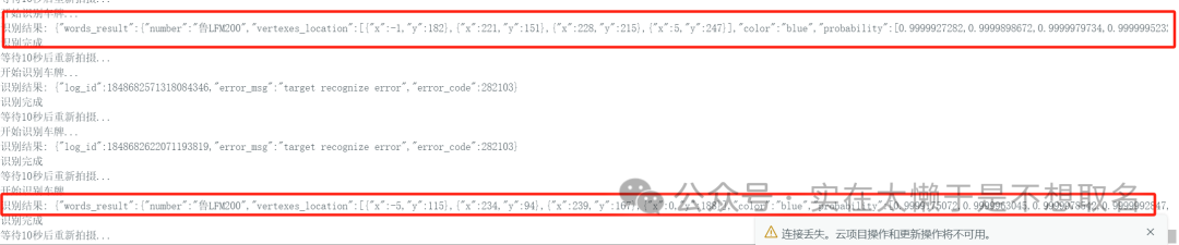 之后将收到的报文车牌信息提取出来,以及车牌在图片的位置等等,根据官网的API说明,还可以判断车牌颜色,车牌是否被阻挡等等。