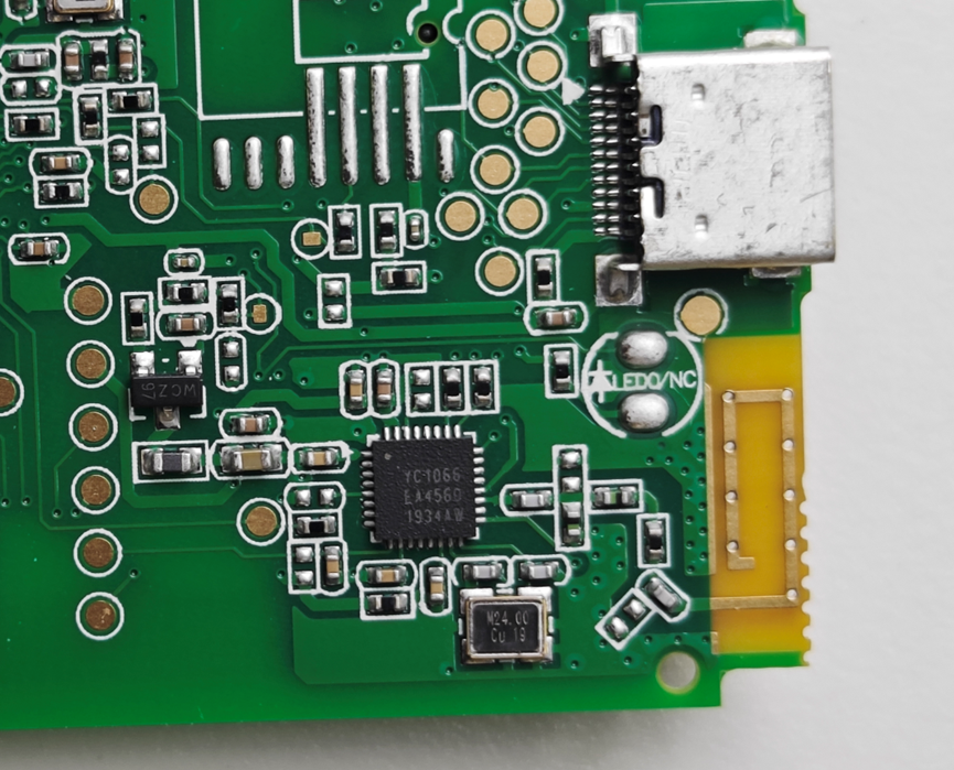 板子上还有一个YC1066,这是一个蓝牙芯片。我们在拆解之前也看到屏幕旁边写着支持蓝牙。上面那个OBU数据接口没法用来充电或者通讯,所以可以通过下面这个蓝牙来通讯,群里有人说可以通过这个蓝牙连接手机之后自行激活ETC终端设备,我也没试过,有试过的朋友可以评论一下。