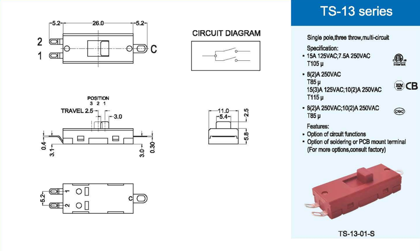 这个滑动开关,是珠海拓林电子的TS-13系列滑动开关。