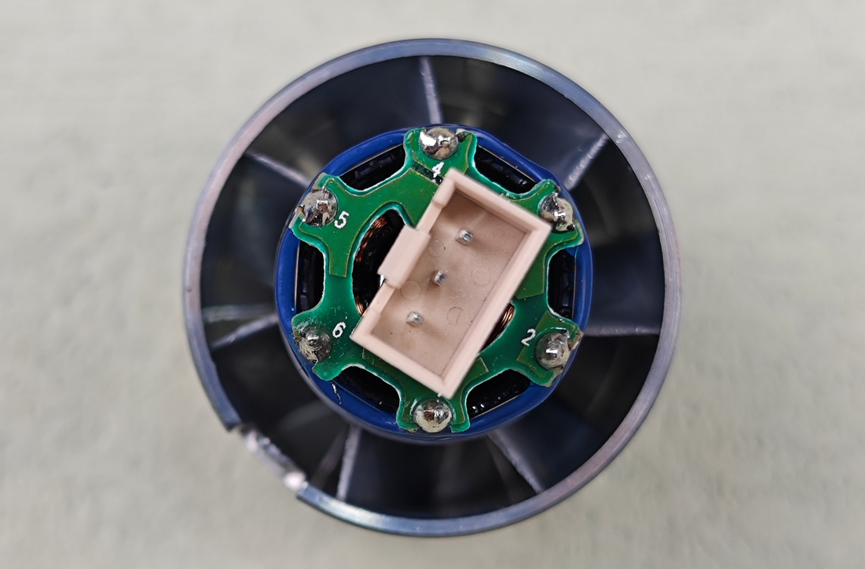 这是一个外转子高速无刷电机。有三个相线,通过一个PCB实现绕组和相线端子的连接,真是简单粗暴啊。