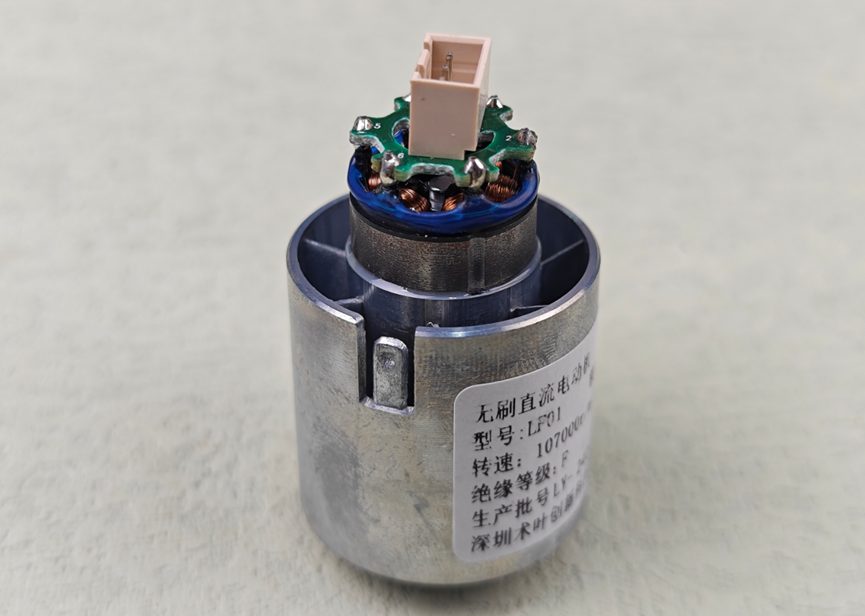 高速电机的型号是LF01,额定电压为DC310V,转速107000r/min,功率105W。制造商是深圳术叶创新科技有限公司。