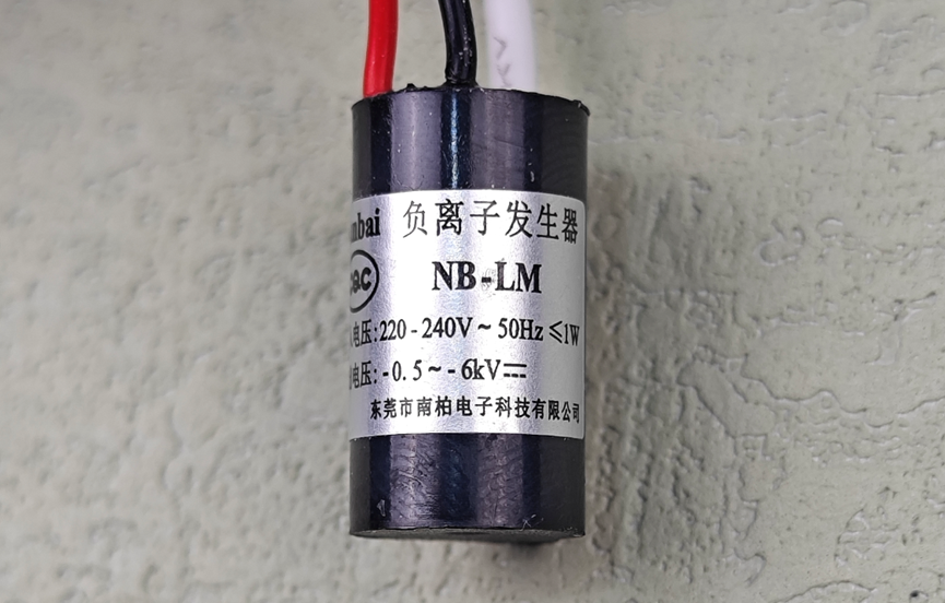 这款负离子发生器的型号是NB-LM,交流电供电,功率小于1W,来自东莞市南柏电子科技有限公司。