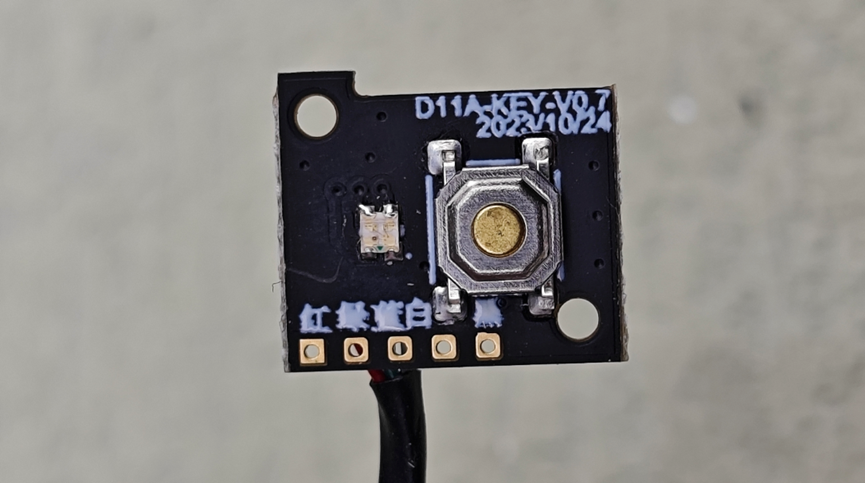 拆掉螺丝,去掉按键板上的小塑料件,可以看到按键板是黑色PCB,上面有一个RGB LED灯。