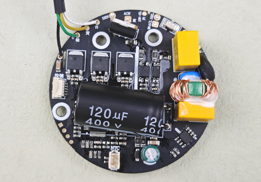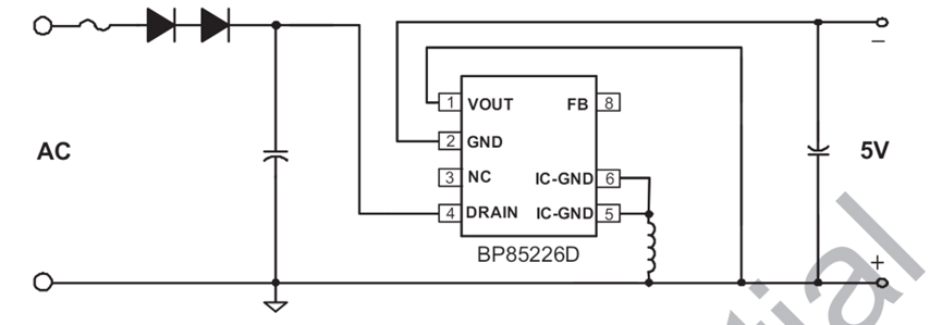 上图中的SOP-7封装的器件是BP85226D,来自晶丰明源。这是一款高集成度的开关电源芯片,适合用于全电压85-265VAC输入的BUCK,Buck-Boost变换器拓扑应用。
