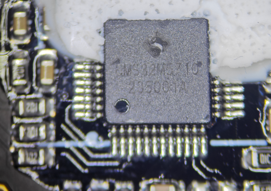 MCU的型号是CMS32M5710L048,封装为LQFP-48,基于ARM-Cortex M0内核,是中微半导体电机控制产品线的主力产品。广泛应用于正弦吸尘器、电动两轮车、变频空调、变频洗衣机、高压高速吹风机等产品。