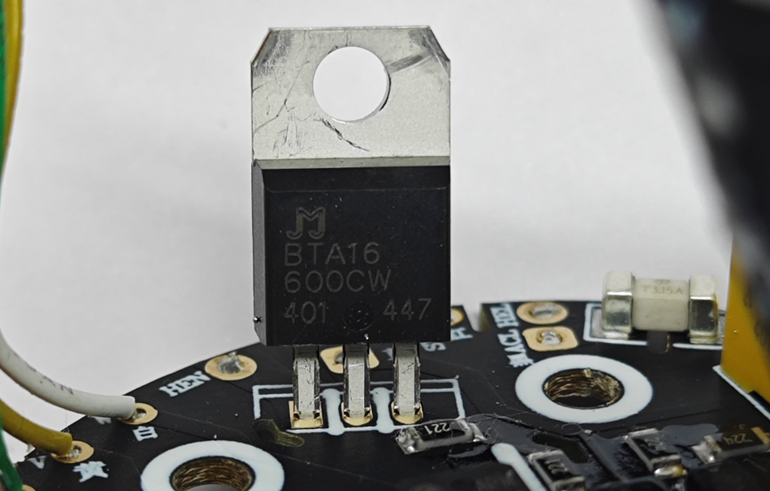 板子上有一个TO-220A封装的双向可控硅。型号是BTA16-600CW,从品牌LOGO上来看是来自于捷捷微。可控硅简写SCR,也叫晶闸管,广泛应用于交流控制系统中,可以实现用小功率控制大功率设备。这个吹风机中的可控硅的作用是控制发热丝。可控硅驱动一般采用专用的光耦,下面就介绍光耦。