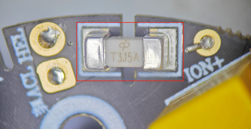 用烙铁拆掉板子上焊接的线,拿掉板子,可以看到里面的加热丝。