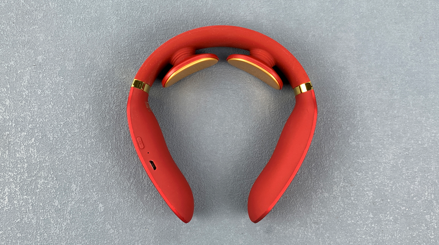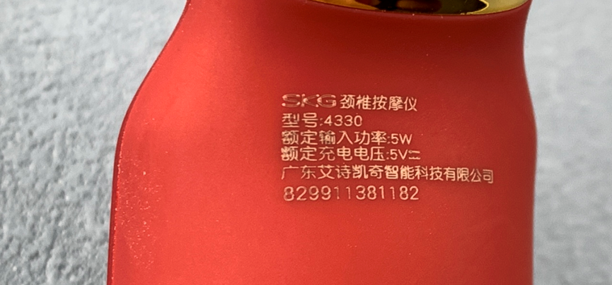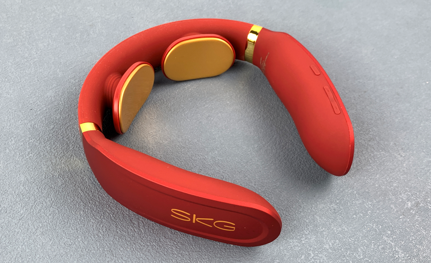 这是一款SKG的颈椎按摩仪,这个红色看着真是个显眼包,估计我在办公室戴着它按摩,我也会成为同事眼中的显眼包。