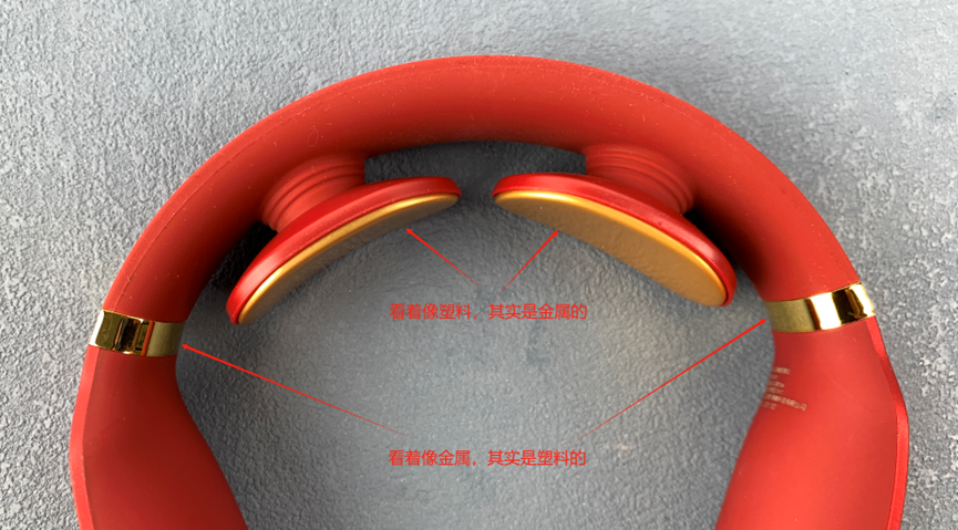 我觉得比较好玩的就是,这个按摩仪,电极片看着是塑料的,实际上拆了之后才看清材质是金属的。而两边的看着像金属的,这两个锃光瓦亮的东西,实际上是塑料的。