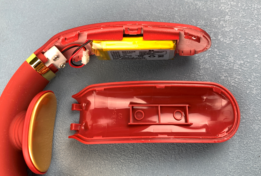 另一边拆开之后是电池。这个也是毫无疑问的。一般情况下这种挂脖式电子产品大多都这样。