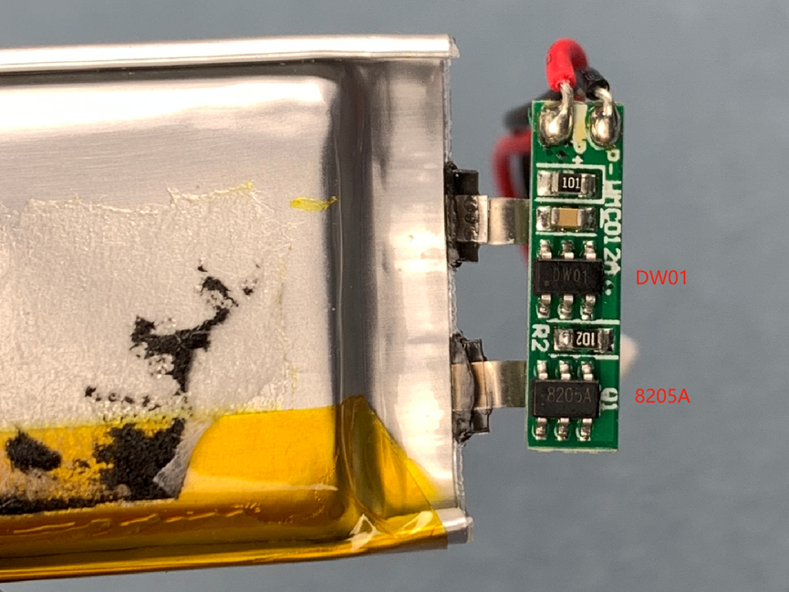 锂电池里面的保护芯片和双MOS是DW01和8205A,这两个的组合真的是屡见不鲜了。