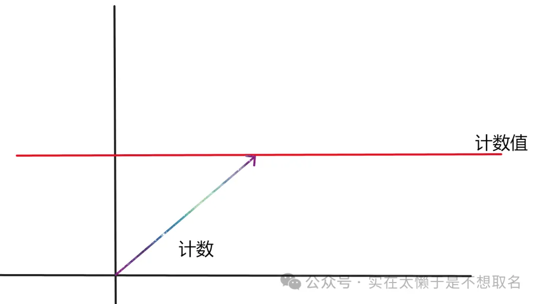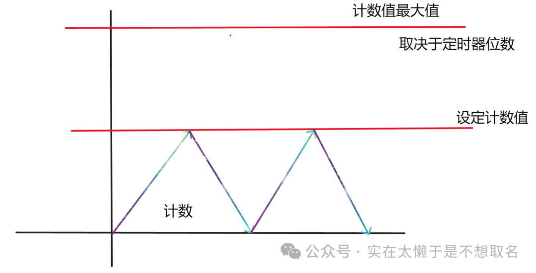 向上计数模式,即从 定时器初值 开始 ,向上靠拢设定计数值。
