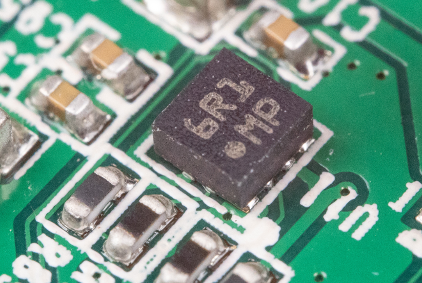 板子上有一个三轴加速度计芯片,封装是LGA12,型号未知。