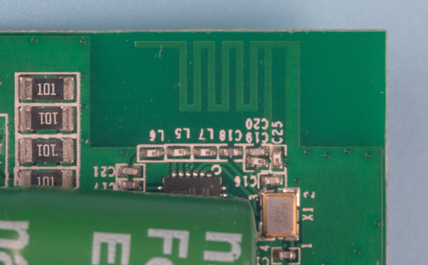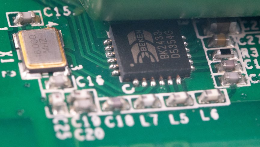 电容下面是一个BK2433芯片,旁边有颗16MHz的晶振。