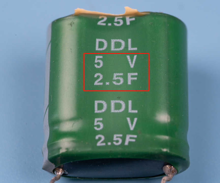 对这个电容有点好奇。掰起来看看。原来是个法拉电容,5V2.5F。