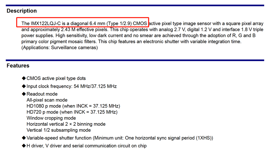 IMX122的关键参数。