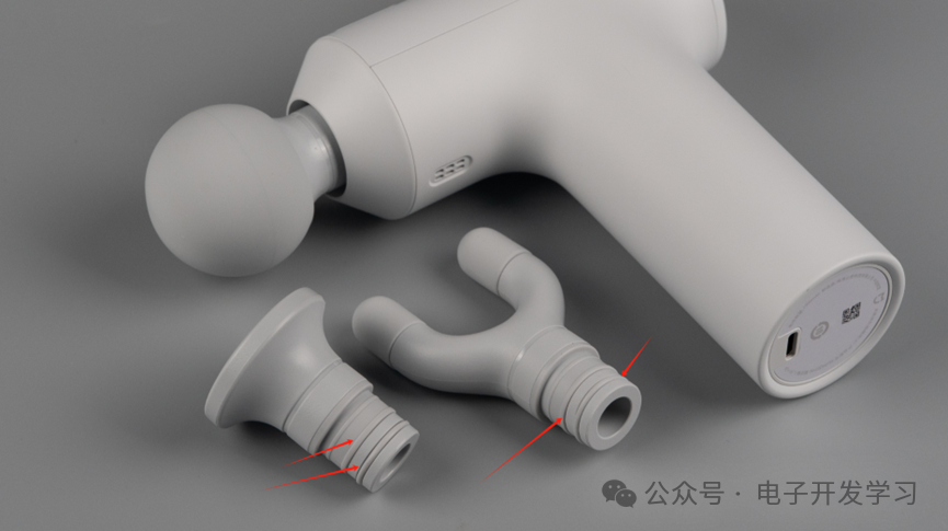 按摩头上开槽之后套了几个类似O型防水圈的橡胶圈用来增加阻尼,这个方式真是成本低、效果好。