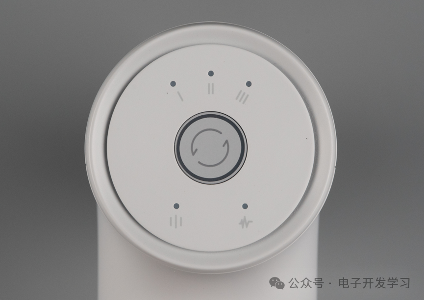 尾部的开关机、强度调节、模式调节共用同一个按键。两种模式和三个强度都有对应的指示灯。按键的操作逻辑是长按开关机,短按调节强度,双击切换模式,非常简洁,用户学习起来也很简单。