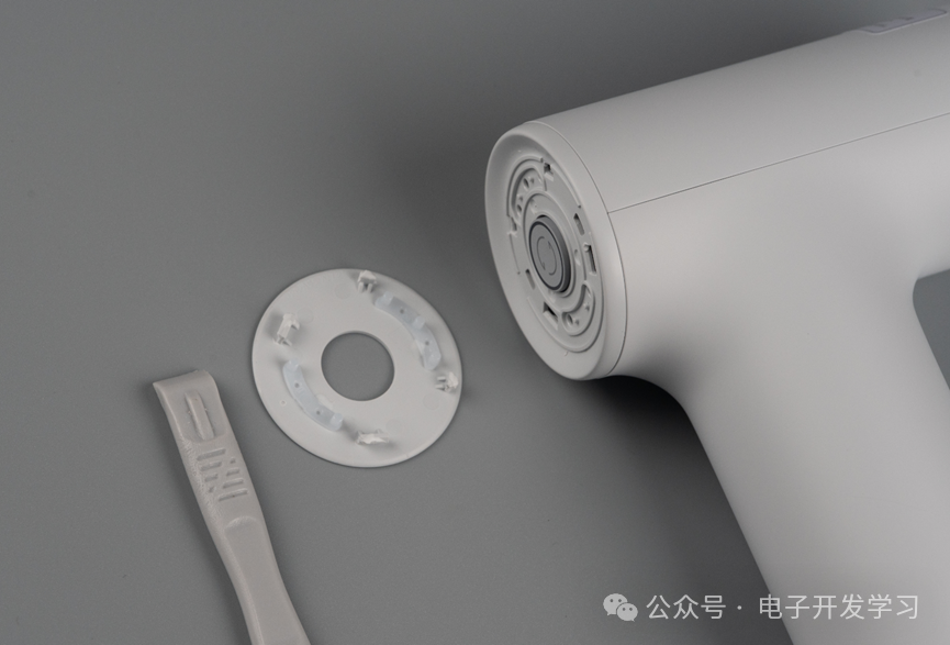 按照以前拆解米家筋膜枪3的经验,我觉得应该从尾部的用户交互界面来拆解。所以撬下了用户交互界面的盖板,