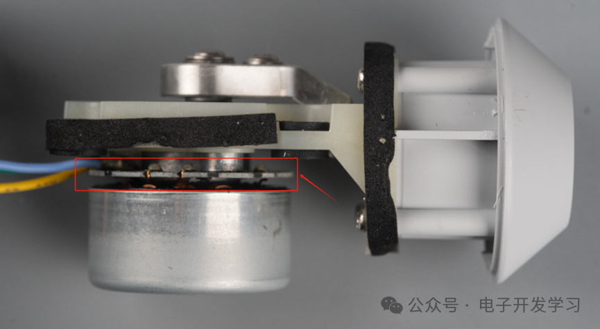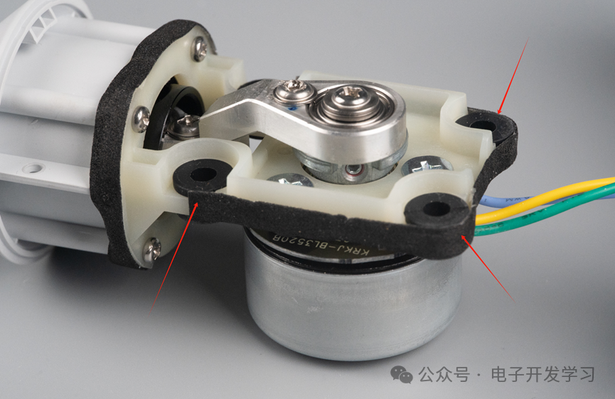 整个运动结构和主壳体固定的时候,螺丝处有加减震胶垫。