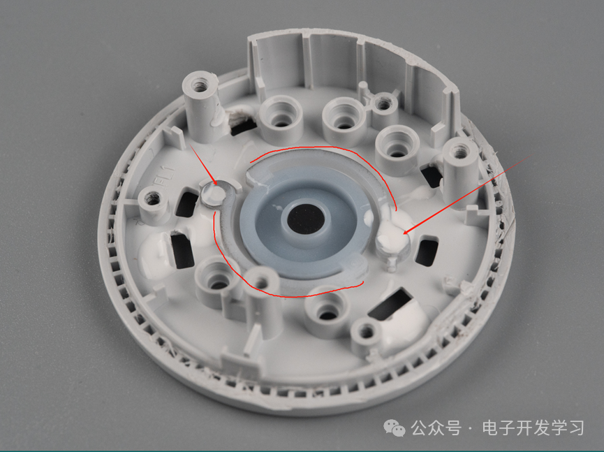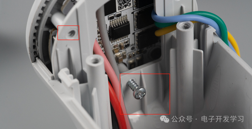 尾部塑料盖是通过螺丝固定在电路板上的,进一步说明了从尾部拆解是错误的操作。