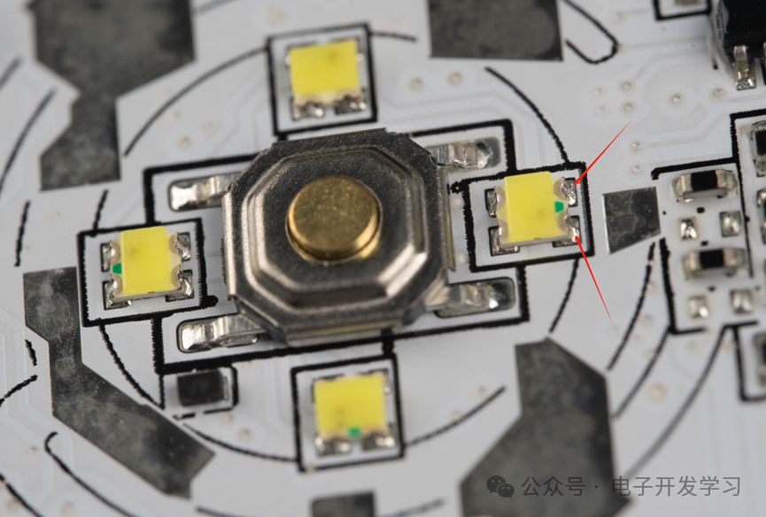 看到板子背面我瞬间懂了,背面有7个双色LED和两个单色LED,也就是总共有16个led需要控制。