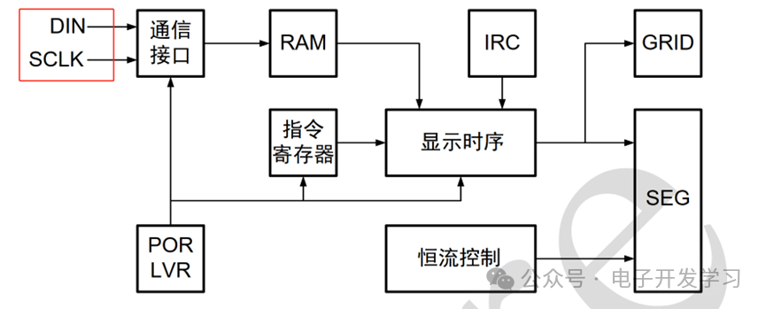 这个器件通过两线数据接口和MCU通信,接受MCU的指令之后完成恒流LED驱动。