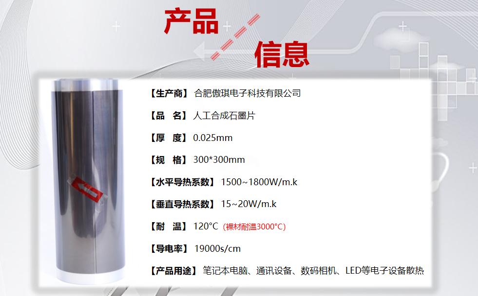 傲琪人工合成石墨片针对这些需求提供了全面解决方案。该材料采用先进的高温石墨化工艺制备,形成了高度取向的晶体结构,实现了卓越的面内导热性能。