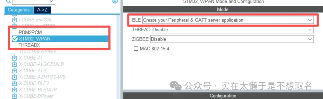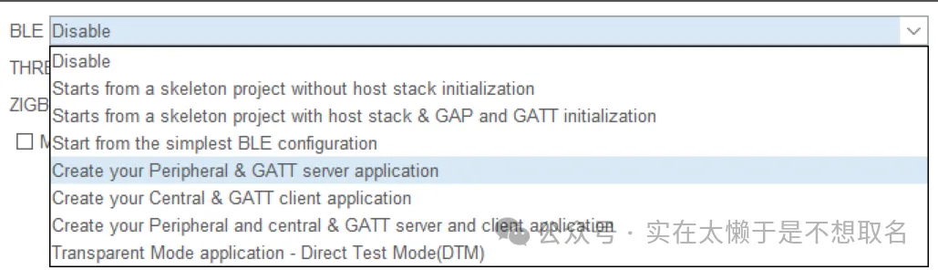 在拓展包:STM32_WPAN中开启BLE的功能,这里的功能选择有很多,以后单独出一期讲解详细配置。