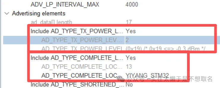 广播信息包含功率信息和广播名称,广播名称我们叫做YIYANG_STM32(自己修改)