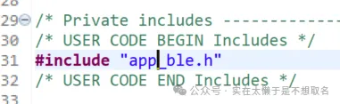 在Main.c中添加app_ble.h,这个头文件包含了我们的要调用的应用层函数:
