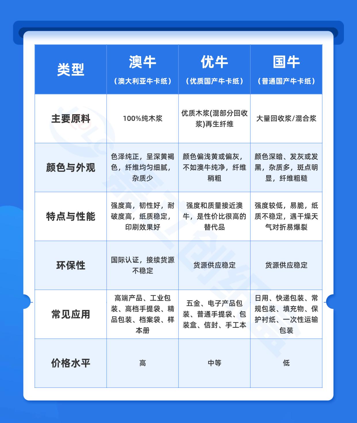 澳牛(澳大利亚牛卡纸):名字里带“澳”,但并非只来自澳大利亚,还包括新西兰、北欧等地区的进口牛皮纸,是行业内公认的高端牛皮纸代表。