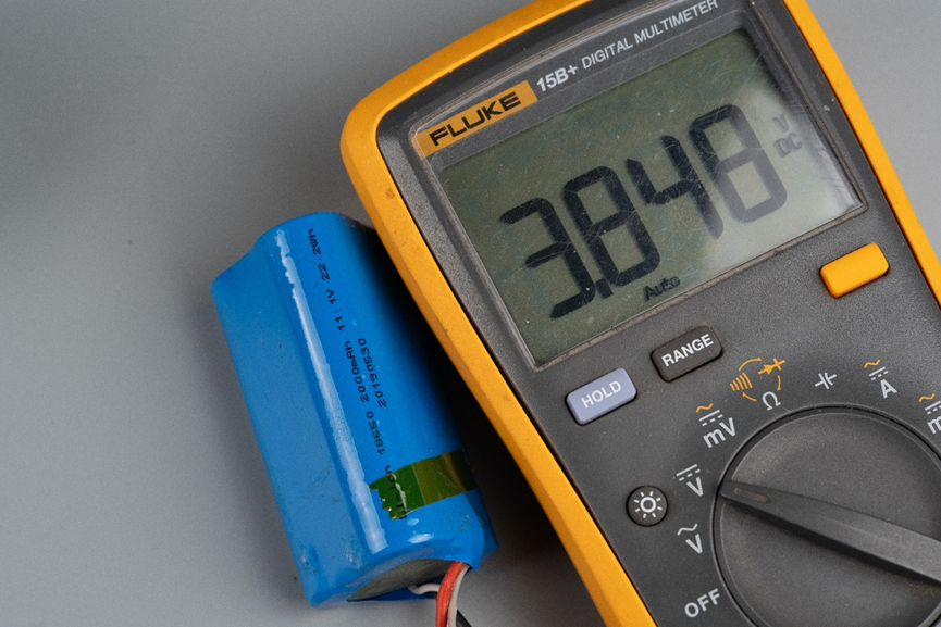 既然拆开是为了维修,那就动起来吧,先从电池查起。一测发现电池居然只有3.8V电了。看了三个电芯坏了两,剩下一个孤掌难鸣啊。看来这个锂电池升压充电方案虽然挺省钱,但是挺费电芯的。