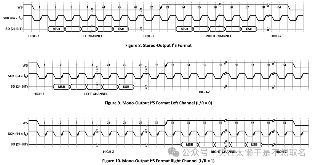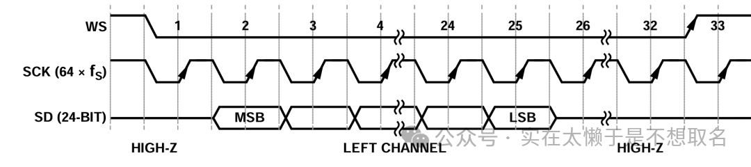 可以看到WS低电平时则是选择了左声道,WS高电平时则是选择了右声道。