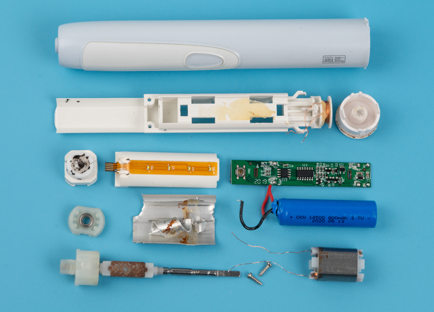 这是群友寄来的一款澎湃电动牙刷。也是经过几年996之后,寿终正寝了,所以让它再次发挥一下余热,成为我的拆解素材。