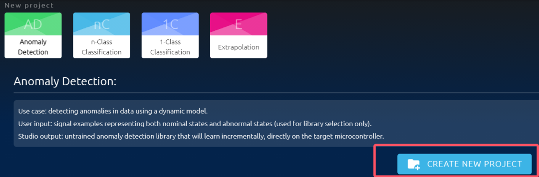 当我们激活好NanoEdge AI之后,可以看到NanoEdge可以适用于以下四种模型训练: