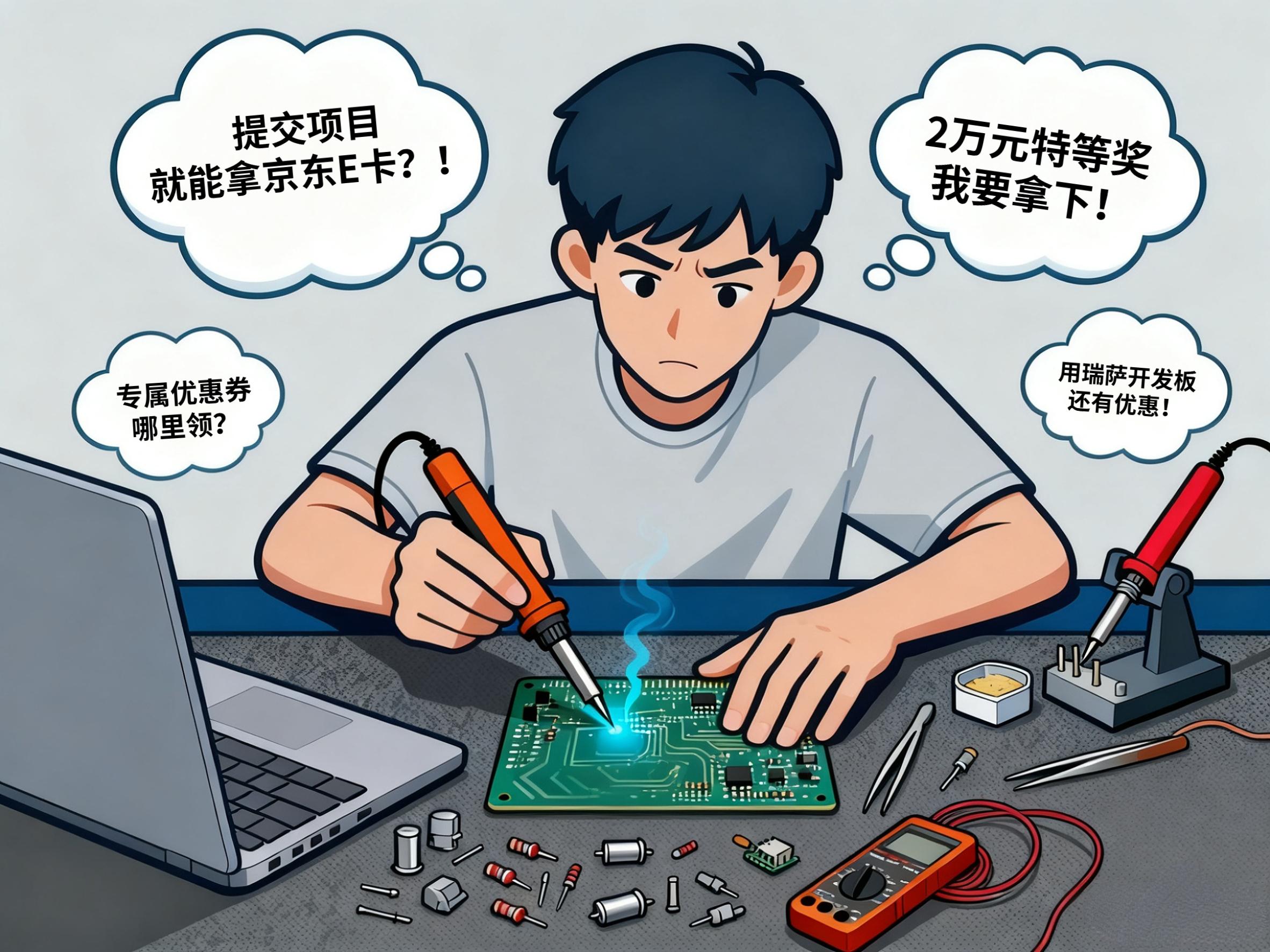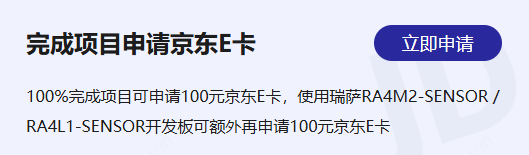 若是使用瑞萨RA4M2-SENSOR或RA4L1-KB开发板进行创作,还能额外再申领100元京东E卡,双重奖励轻松到手!