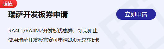 别慌!大赛专属福利已就位:参赛选手可申请瑞萨RA4L1/RA4M2开发板优惠券,早鸟价券只要9.9元就能超低价拿下瑞萨开发板!
