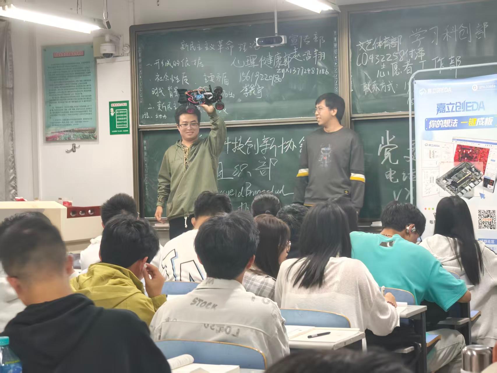 #嘉立创EDA校园讲师# 当校园里的科创热情遇上嘉立创EDA的开源力量,一场关于“想法变实物”的奇妙碰撞就此展开。电子电气工程学院大学生科技创新协会联合嘉立创EDA开展招新宣讲活动,让开源硬件与校园科创生态深度交融,为热爱创造的学子们铺就了从创意到实物的快捷通道。
