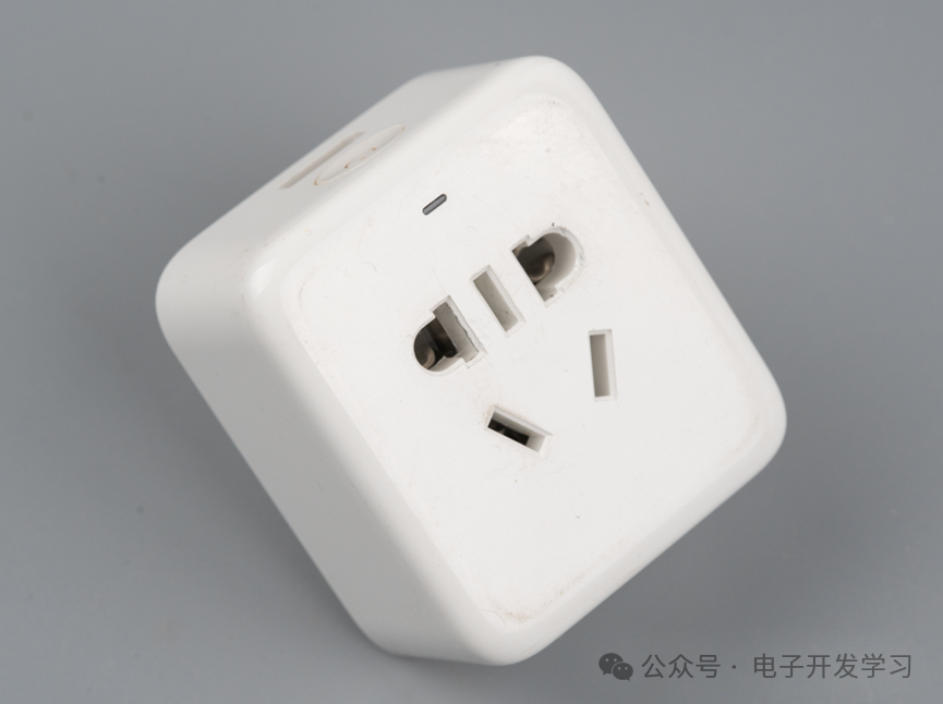 这种智能插座,可以通过wifi或者蓝牙连接到网关。这样就可以在手机上通过APP来控制这个开关的通断电。除了使用APP控制,也可以通过顶部的这个开关机按键来控制。